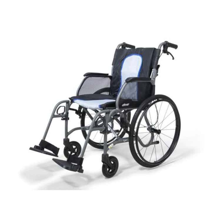 The AeroMg Self Propel Wheelchair by Drive Devilbiss is an ultra lightweight magnesium alloy wheelchair with upholstery.