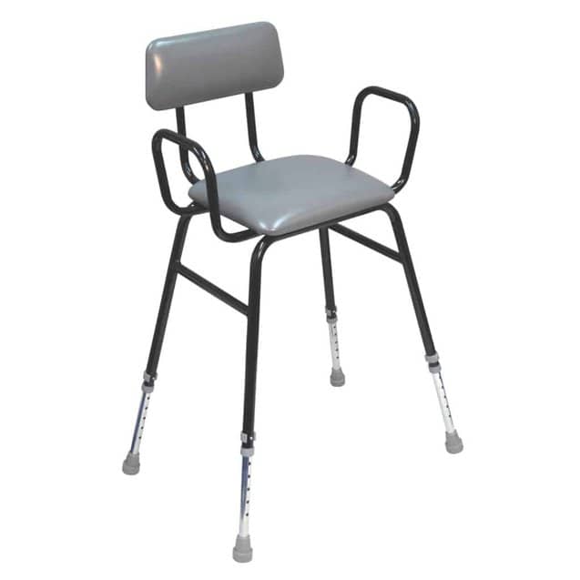 This Black Perching Stool by Aidapt is height adjustable and includes side mounted stress bars, padded seat and padded backrest.
