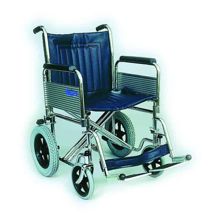 £259.00 with VAT Relief | £310.80 inc VATThe Days Transit Wheelchair fold easily away for storage and transportation, with the added option of a folding or non-folding back. Constructed with a chrome plated steel frame and stainless steel skirt guards. It also features a wipe clean fabric seat and moulded armrests for extra comfort. The wheelchair has many features like its detachable armrests,…
