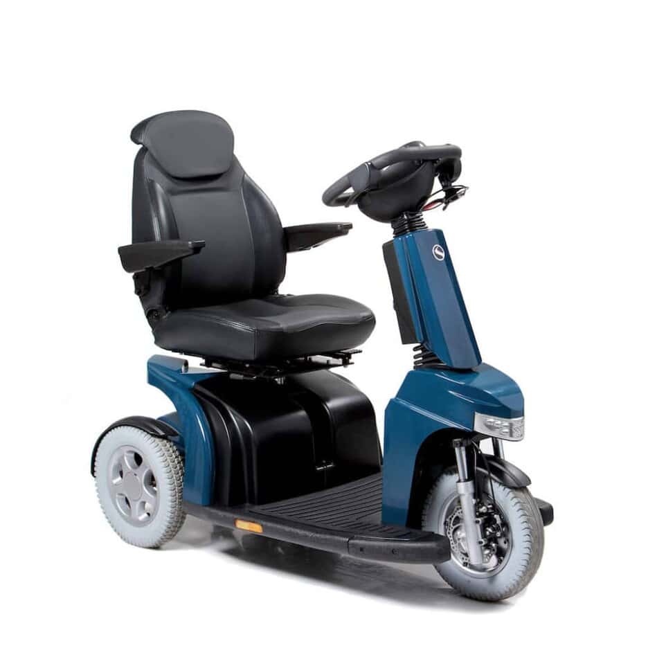 £2,699.00 with VAT Relief | £3,238.80 inc VATThis Sterling Elite 2 Plus Mobility Scooter by Sunrise Medical is a 3 wheel mobility scooter with a top speed of 8mph. Fitted as standard with large 14″ wheels with robust aluminium rims to increase traction. There is also a full suspension system to ensure the driver has a smooth ride. A smart 360° swivel…