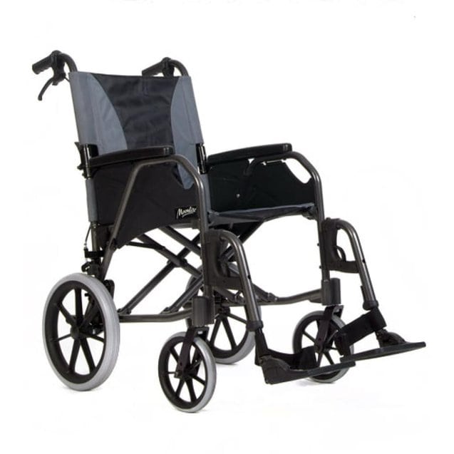 Manufactured from strong yet lightweight aluminium with a stylish grey and black design. The Moonlite Transit Wheelchair can be easily folded to a compact size due to its half folding backrest, making the wheelchair ideal easy storage and transportation.