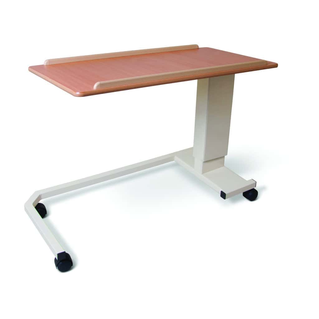 The table has a spring loaded mechanism that allows the height to be adjusted using finger pressure only and the castors make it easy to move and manoeuvre into position.