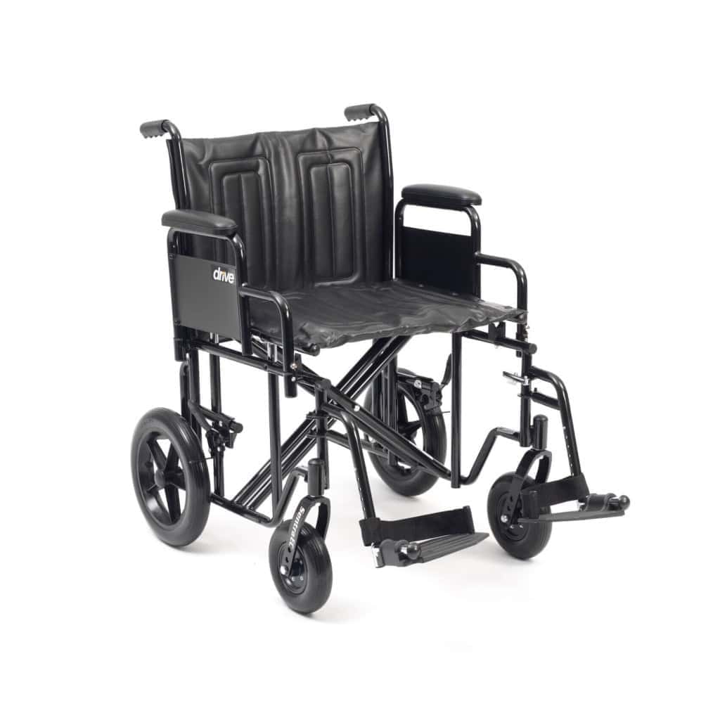 The Drive Sentra HD Transit Wheelchair is a heavy duty bariatric transit wheelchair with seat widths up to 60cm (24″).