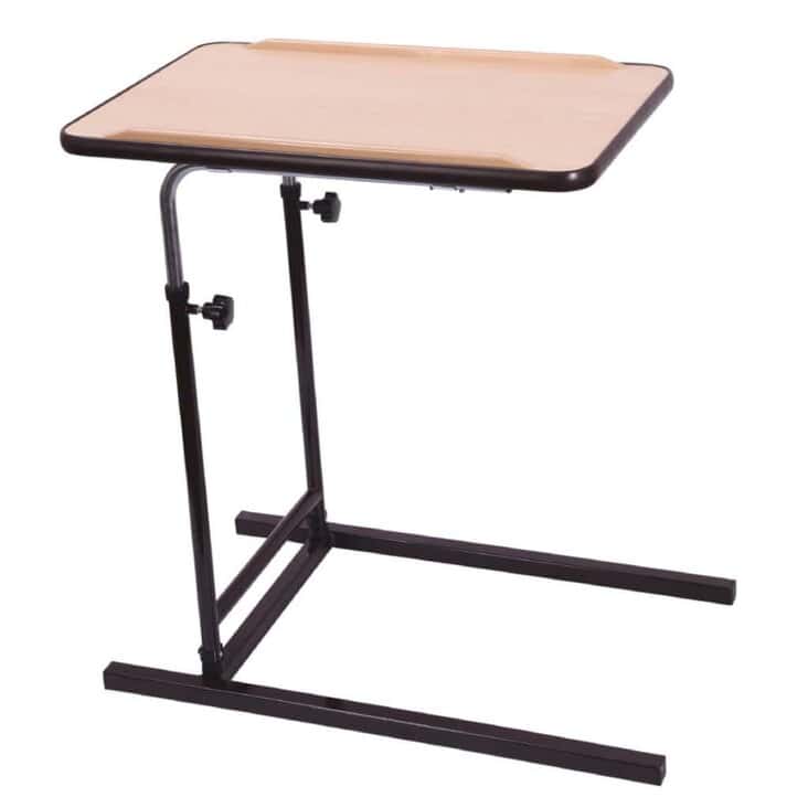The height and angle of the table can be adjusted to suit the user by using the two plastic hand wheels.