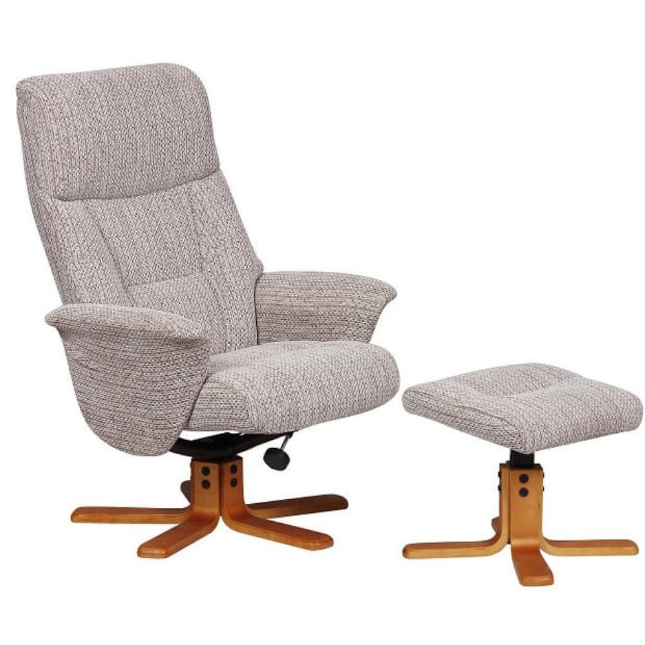 The Marseille Fabric Swive Recliner & Footstool by GFA is a high quality, slender fabric recliner chair with matching footstool.