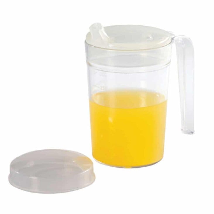 The Polycarbonate Mug With Two Lids is ideal for users who suffer from shakes, tremors and weak grip with its spill proof lid and shatterproof material.