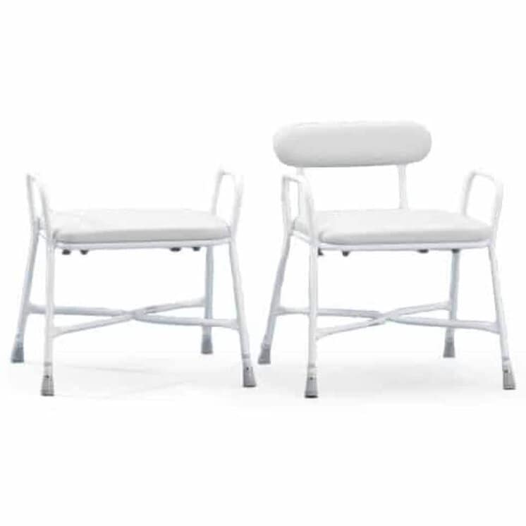 Static Shower Chairs – The majority of static shower chairs are height adjustable and include a backrest and armrests.