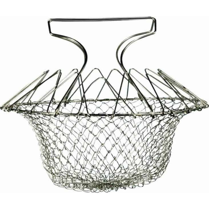 This Stainless Steel Cooking Basket by Aidapt allows for food to be cooked and strained without the need to lift a pan.