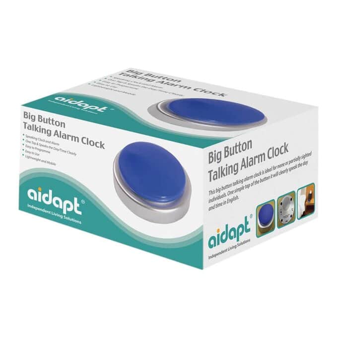 £12.50 with VAT Relief | £15.00 inc VATThis Big Button Talking Alarm Clock by Aidapt is ideal for users with partial or no sight.