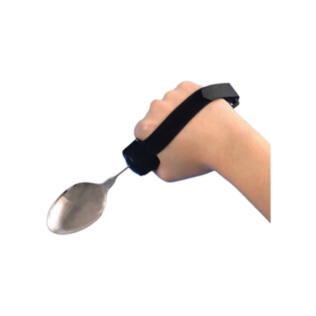 The Utensil Strap by Aidapt is designed to slip through the loop of the handle on the Bendable Spoon/Fork and the Soft Grip Rocker Knife for additional aid when dining.
