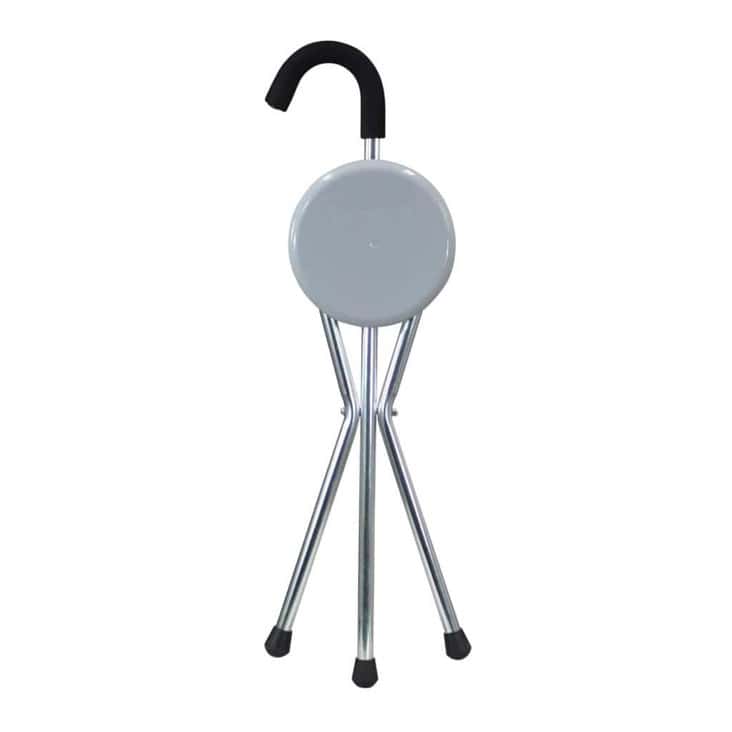 £19.95 with VAT Relief | £23.94 inc VATThis Folding Cane Seat by Aidapt is a lightweight aluminium walking stick with comfortable curved foam handle with an integrated seat and non slip feet.