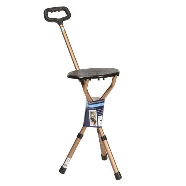 The Adjustable Cane Seat provides a lightweight and transportable comfortable seat and support cane all in one.
